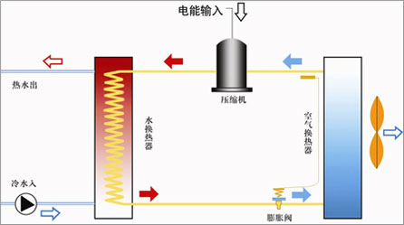 | | | | 空氣源熱泵熱水機組是一種高效集熱并轉移熱量的裝置,由壓縮機、空氣換熱器、水換熱器、膨脹閥和風機等部件組成。運用逆卡諾循環原理,通過壓縮機做功,使工質產生物理相變(氣態——液態——氣態),利用這一往復循環相變過程不斷吸熱和放熱,使冷水逐步升溫,制取的熱水通過水循環系統送至用戶。 |